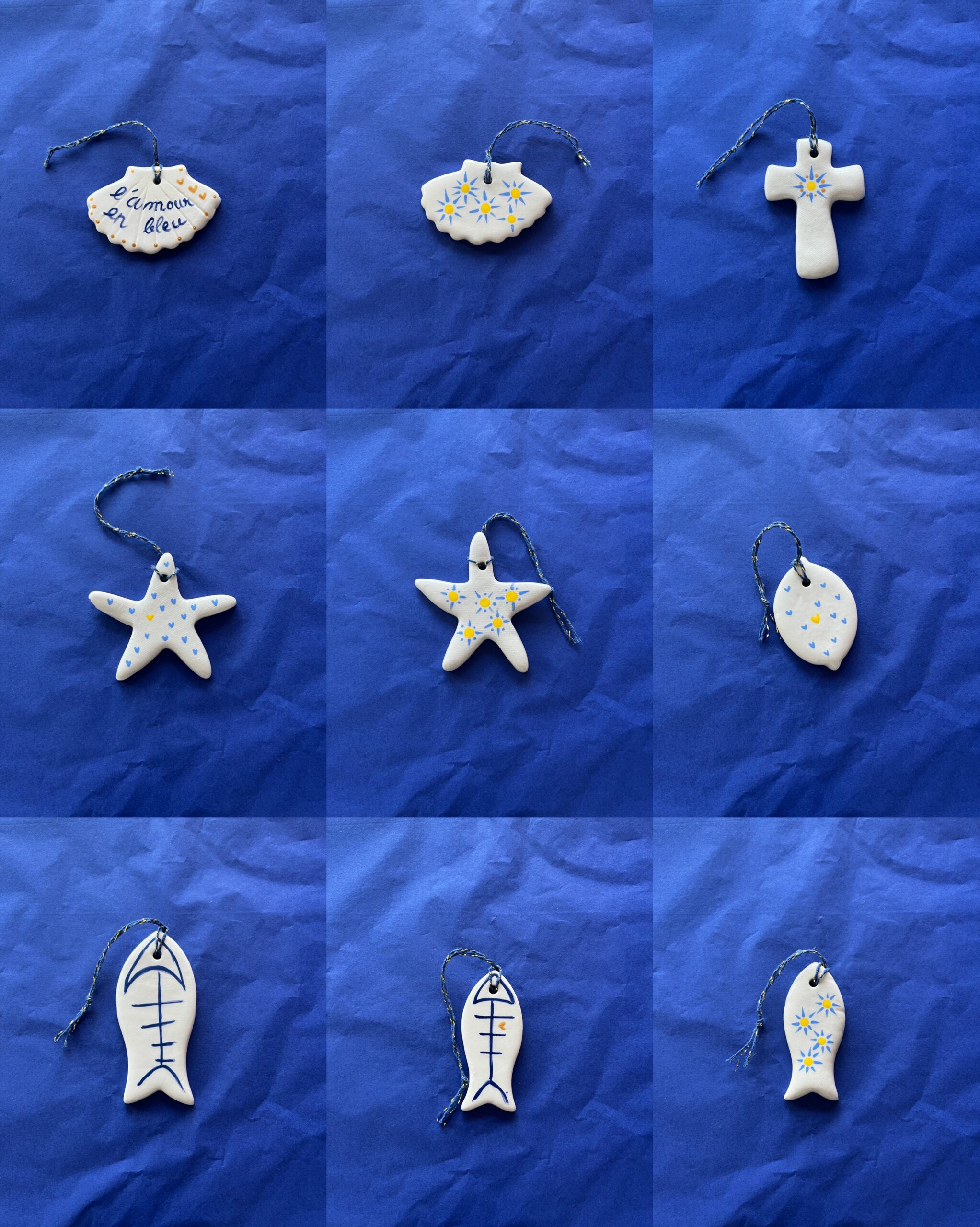 Categories:L'AMour en Bleu, NOËL Tags:ancre, artisanat local, Céramique, céramique artisanale, citron, coquillage, crois, décoration poétique, faïence, fait main, pièce unique, poisson, suspension méditerranéenne, talisman, Vallauris