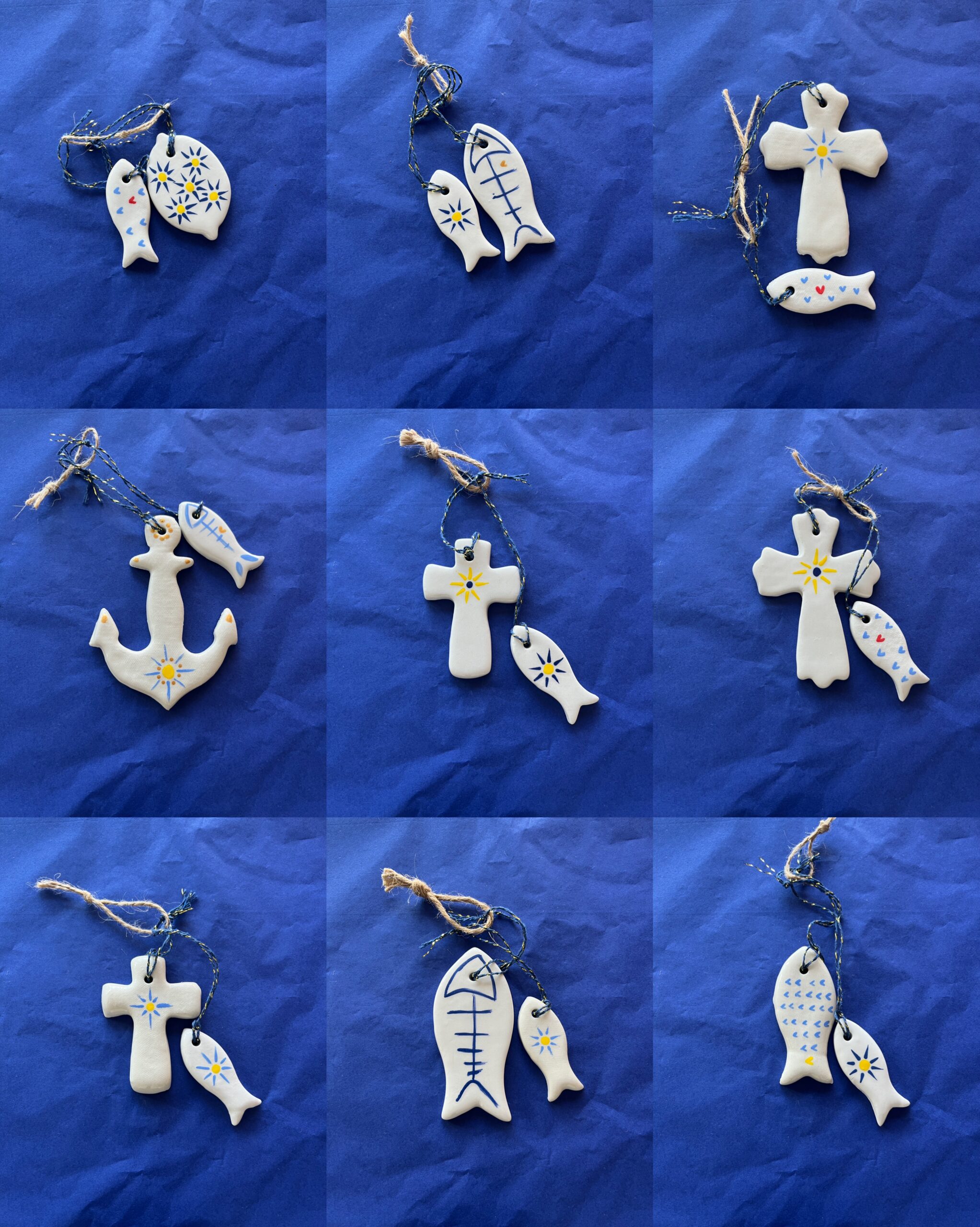Categories:L'AMour en Bleu, NOËL Tags:ancre, artisanat local, Céramique, céramique artisanale, citron, coquillage, crois, décoration poétique, faïence, fait main, pièce unique, poisson, suspension méditerranéenne, talisman, Vallauris
